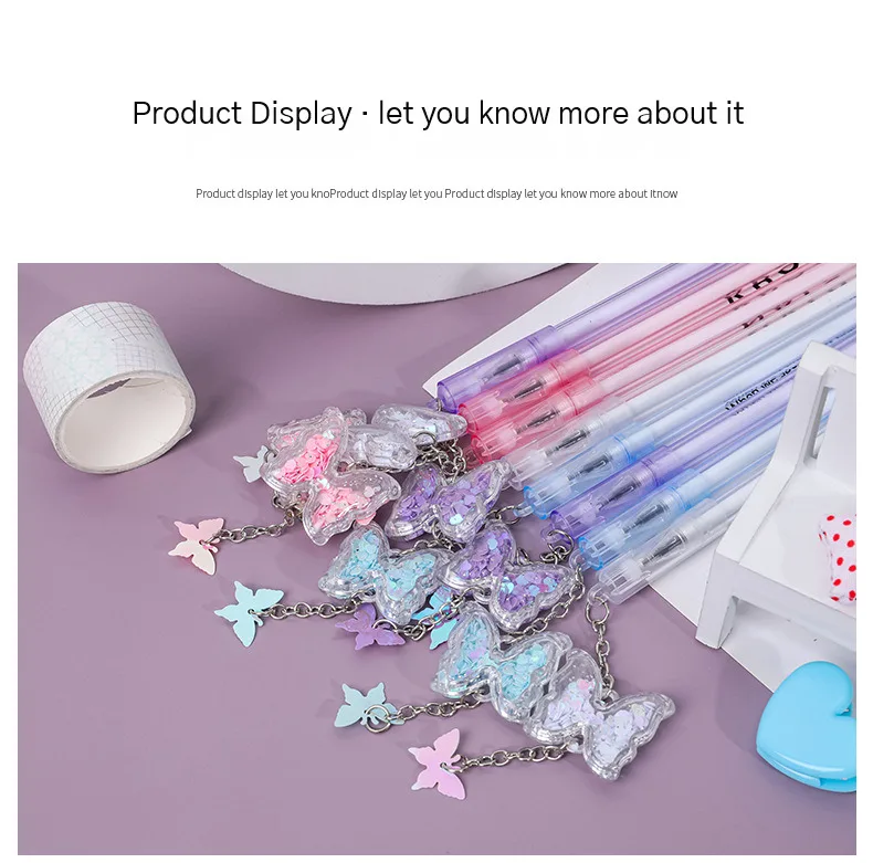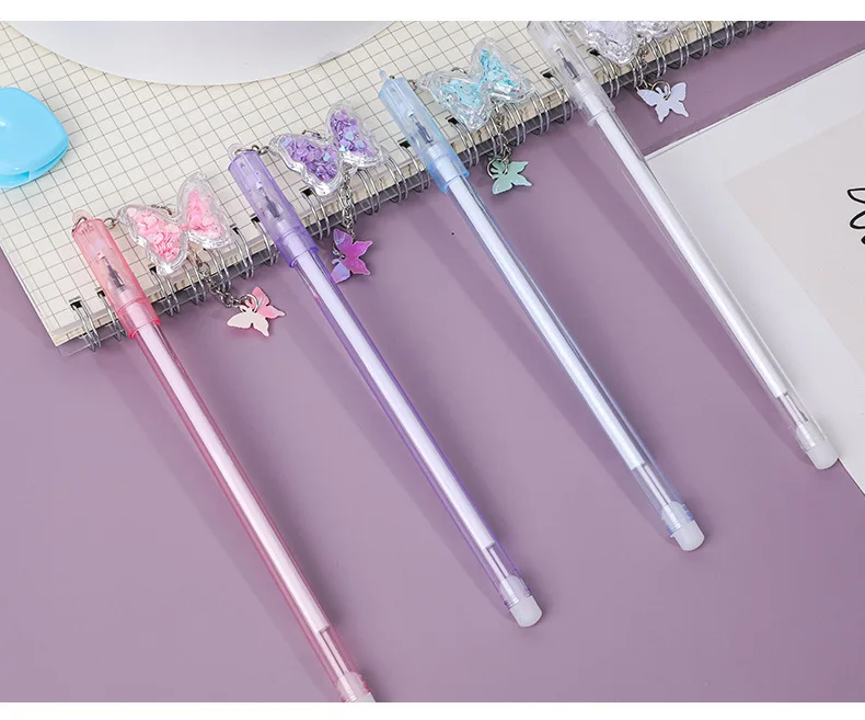 10Pcs/Lot Kawaii Butterfly Pendant Gel Pen 0.5mm Black Ink Smooth Writing Cute Sequin Neutral Pens Kids School Office Stationery